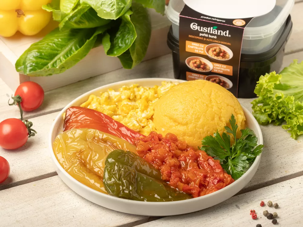 Lunch box Mamaliga cu scrob si ardei in stil moldovenesc