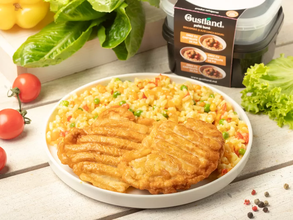 Lunch box Orez cu legume si batuta din pulpa de pui