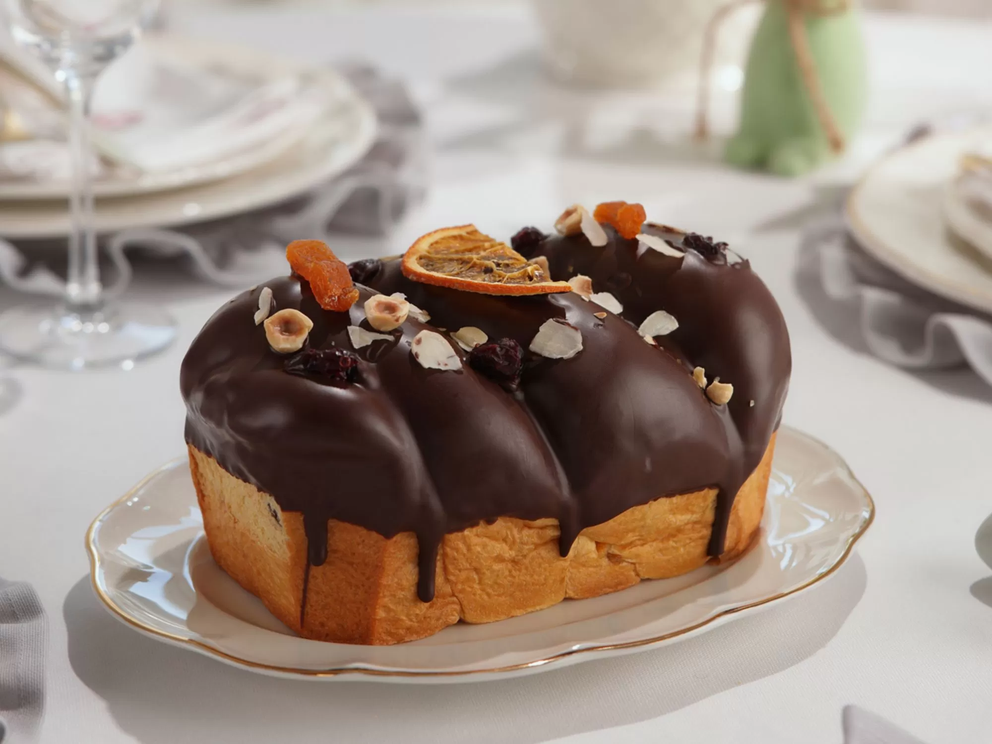 Ruladă din aluat de cozonac cu caise uscate, fructe confiate, alune și migdale