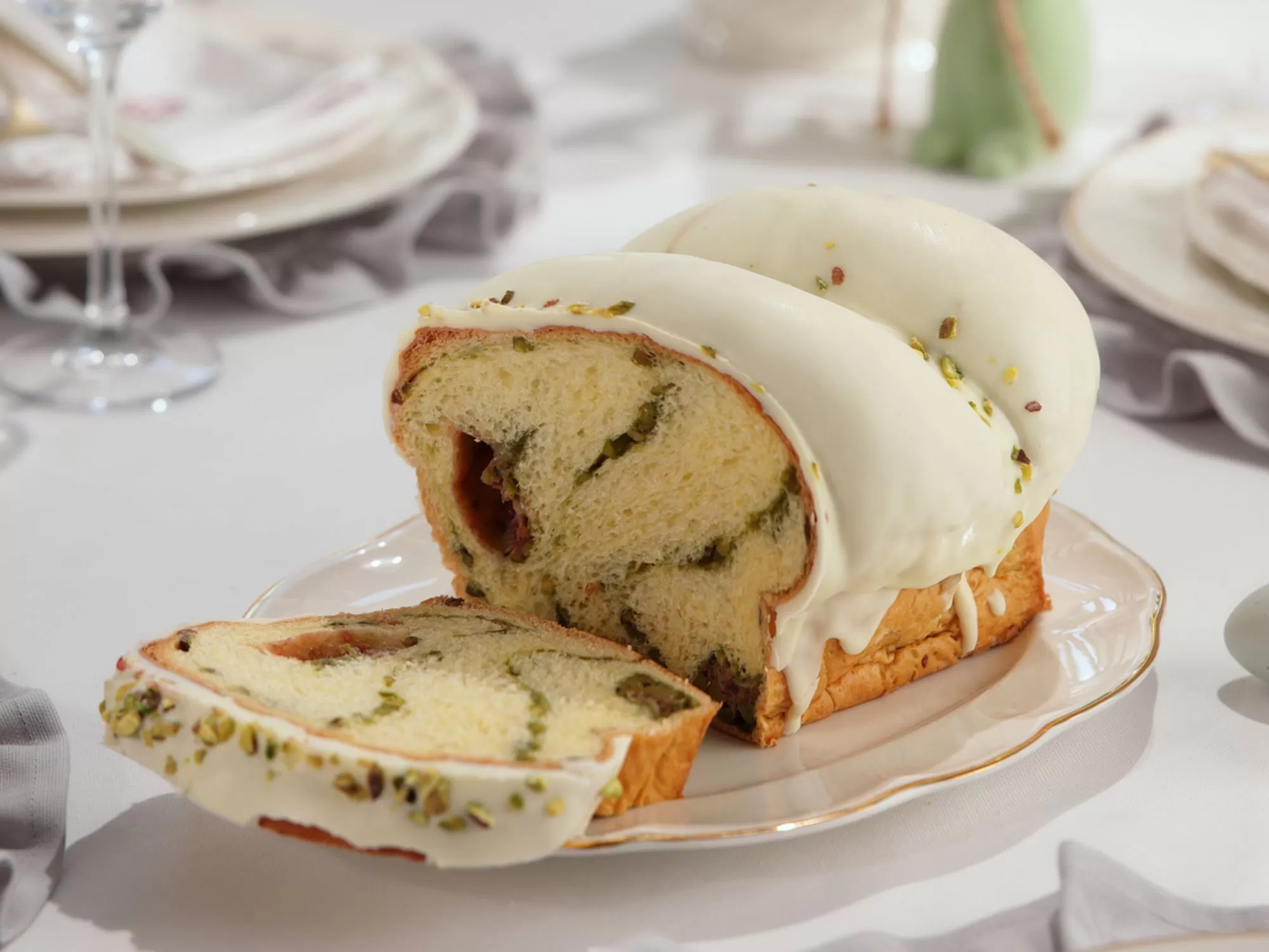 Ruladă din aluat de cozonac cu fistic și zmeură