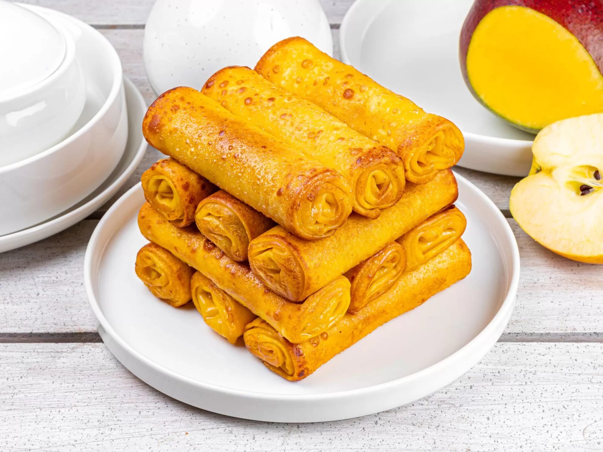 Clătite gratinate cu măr caramelizat și cremă de mango